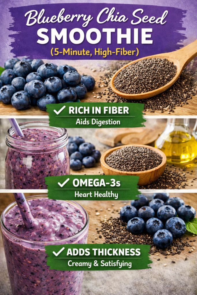 Chia adds fiber. It also helps the smoothie feel more satisfying. That makes it perfect for the “high fiber breakfast” crowd on Pinterest.