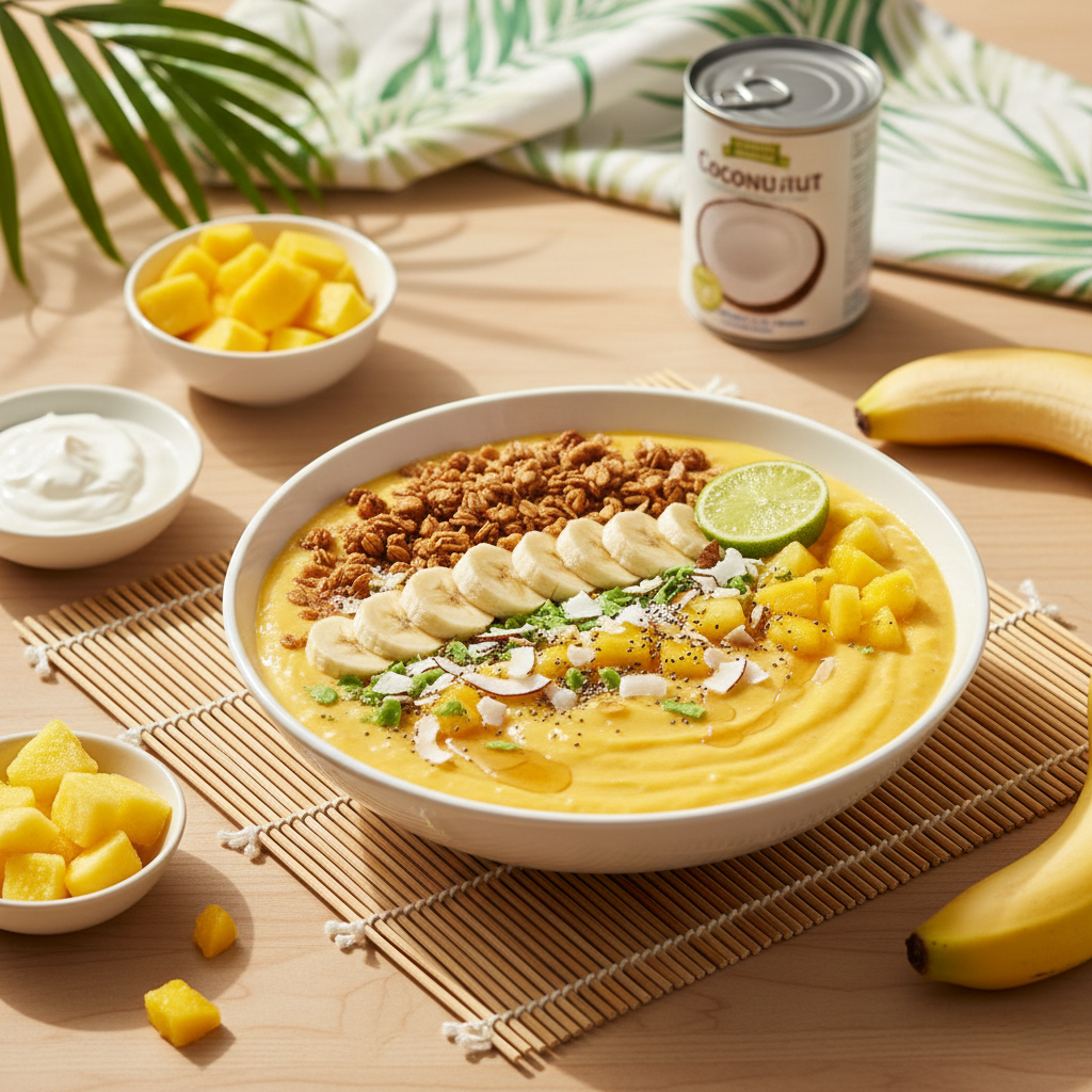 This tropical smoothie bowl is basically a mini vacation in your breakfast bowl. It’s thick, creamy, naturally sweet, and it doesn’t collapse into a watery mess while you’re trying to take a photo.